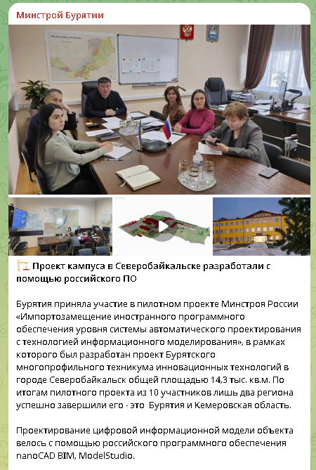 Публикация в телеграмм-канале Минстрой Бурятии